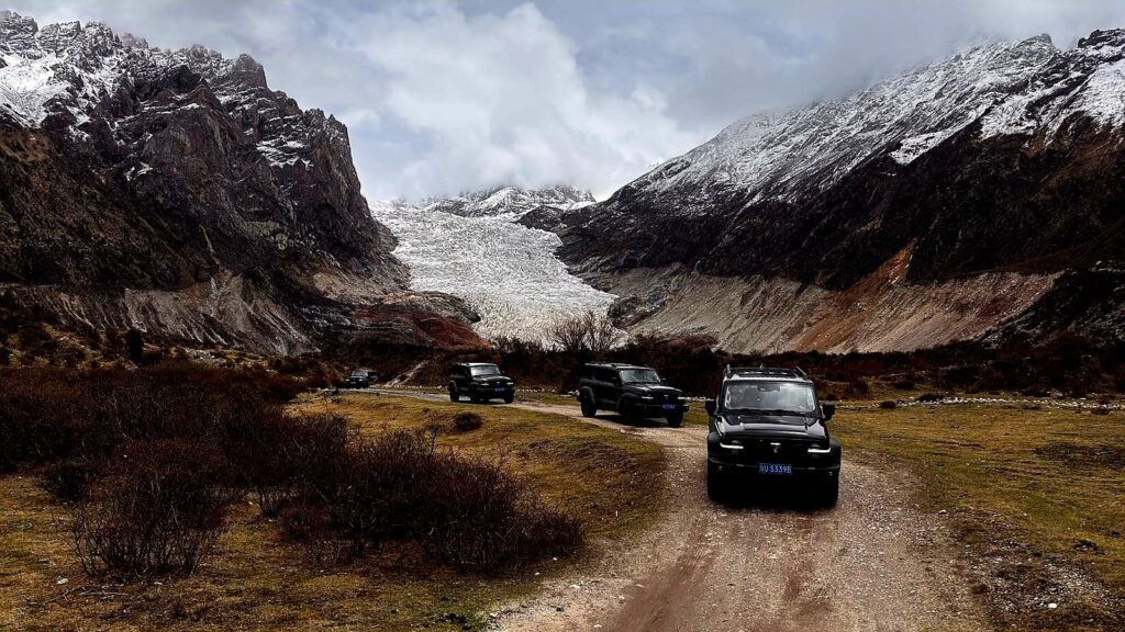 Tylko 245 km, ale wciąż pod górę. Atrakcją dzisiejszego dnia będa lodowce spływające z góry Bujia. To najwyższa góra wschodniego Tybetu i pozostaje świętą górą dla wyznawców buddyzmu. Spływające z gór lodowce tworzą mokradła, a te są miejscem które szczególnie upodobały sobie ptaki. Bujia to również jedno z miejsc występowania śnieżnej pantery i niedźwiedzi.