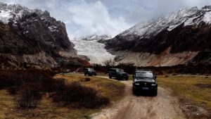 Dziś największą atrakcją będzie schodzący wprost do drogi lodowiec Karola oraz ostatnie już święte jezioro buddystów – Yamdrok.