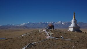 Będzie coraz wyżej. Meta naszego dnia jest na wysokości 3900 metrów. Ale po drodze mamy do odwiedzenia klasztor Zhizhou. Jeden z najwyżej położonych w całym Tybecie. Jest on na wysokości równej Mont Blanc – 4807 metrów. Klasztor to miejsce przedbuddyjskie – jedno z najważniejszych miejsc religii Bon.